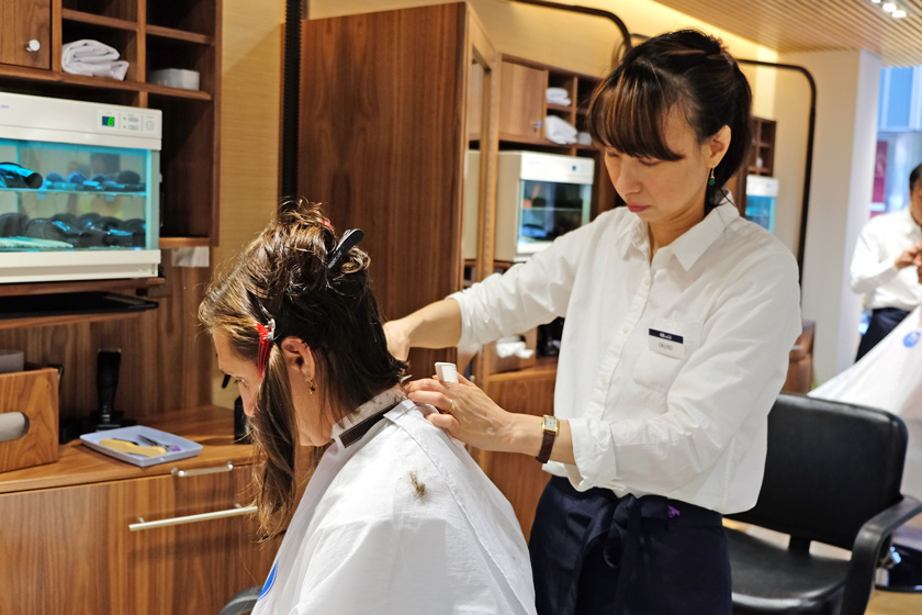 There are some ingenious innovations, like a sort of tame vacuum cleaner to make sure your hair debris doesn’t accompany you out of the shop. There is the promise that the implements are disinfected between clients, which is nice though I wouldn’t have missed it if it wasn’t there. And just so you know nobody else has used your comb they encourage the customer to keep it at the end of the performance.
