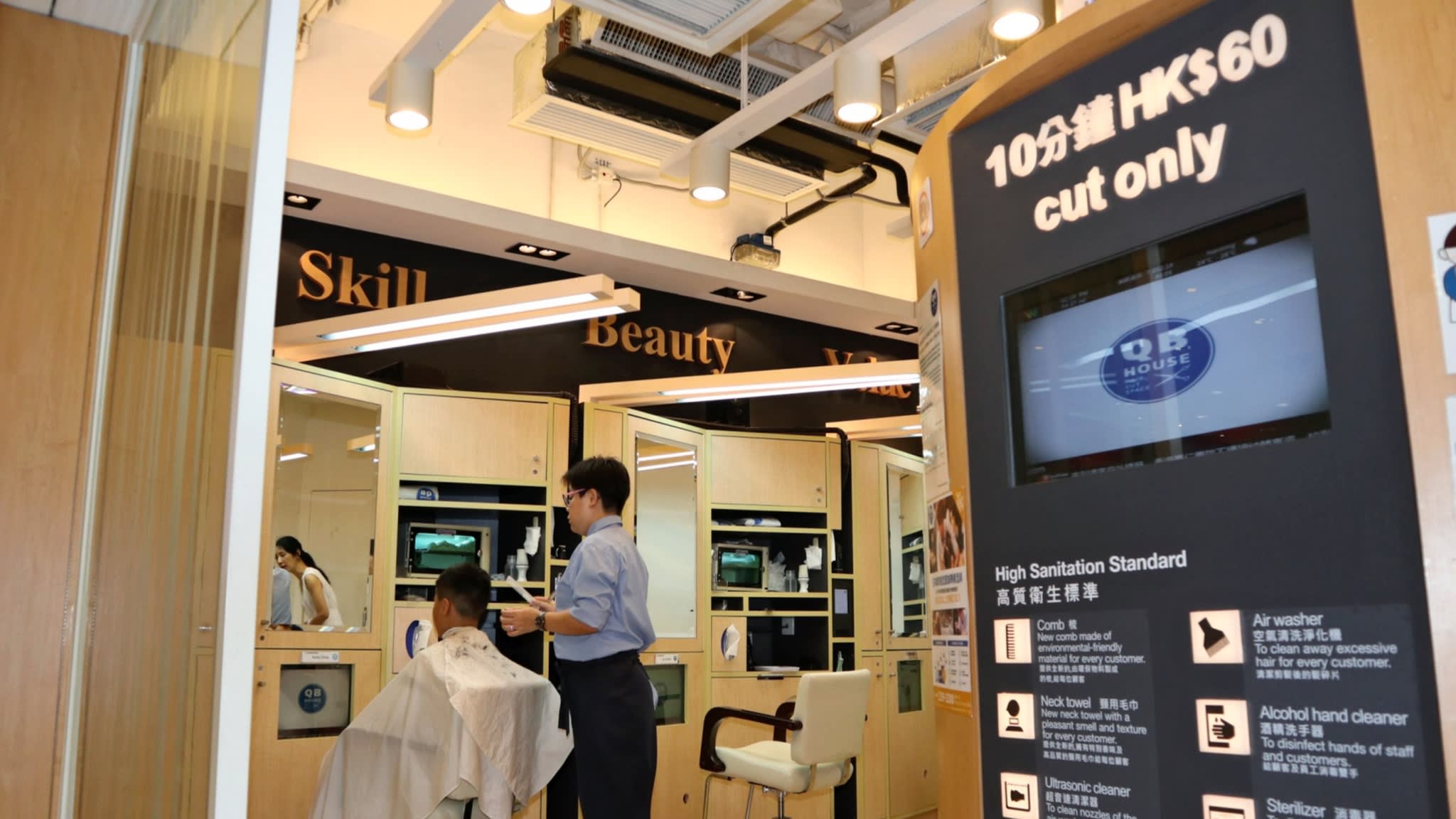 The latest thing, pioneered by a Japanese company called QB House, is a high-tech quick version. You go in, pay (Octopus is not just accepted – it is insisted on) and unless you have to wait on the bench supplied you will be done and dusted in ten minutes.